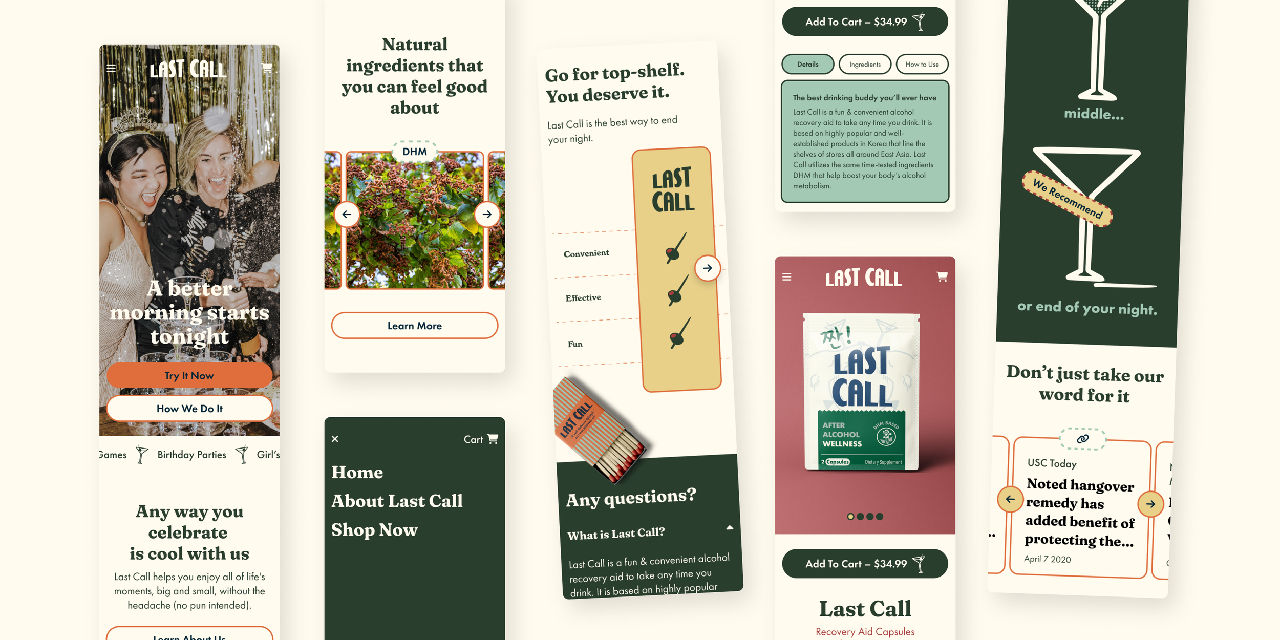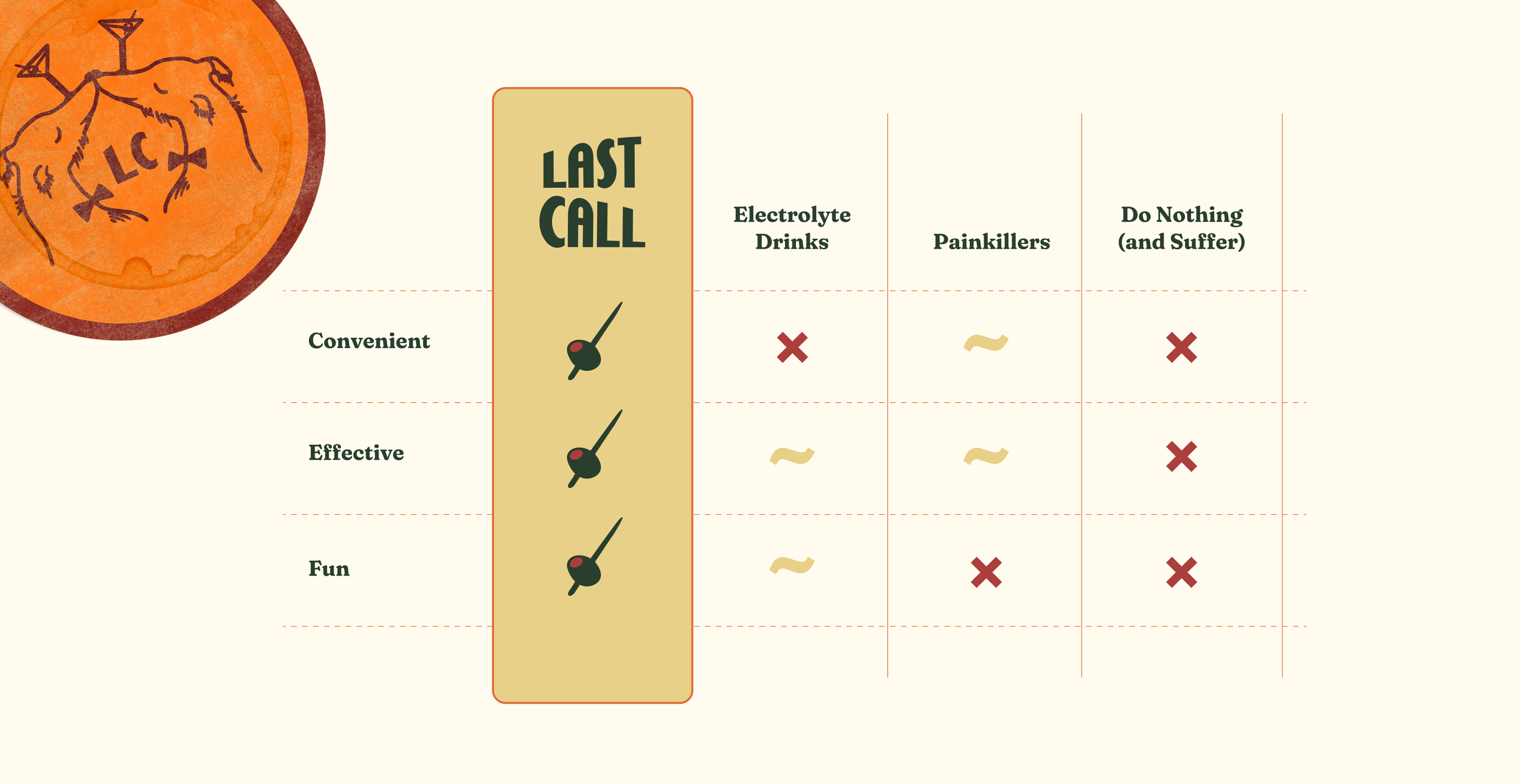 Today, 130 million Americans experience adverse effects after drinking alcohol. Enter: an easy-to-use, engaging product backed by actual science. Last Call’s goal is to build a lifestyle brand based ona new product that combines modernwellness withtraditional fun.
